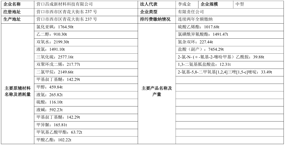 營口昌成新材料科技有限公司清潔生產(chǎn)信息公示
